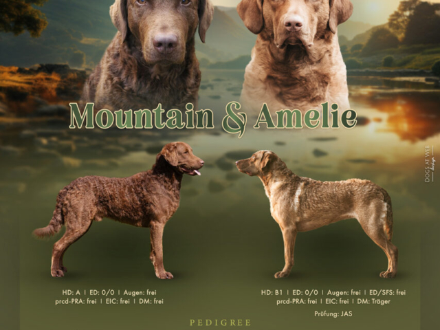 Wir erwarten aus dieser Verpaarung, sofern alles wie beabsichtigt verläuft, im April/Mai arbeitsfreudige und wesensfeste Chessies. Die durch die amerikanischen Linien beider Eltern, frisches Blut in die Zucht bringen.